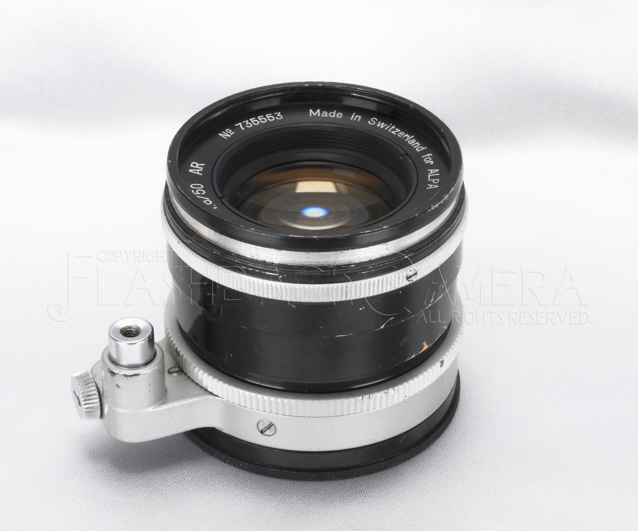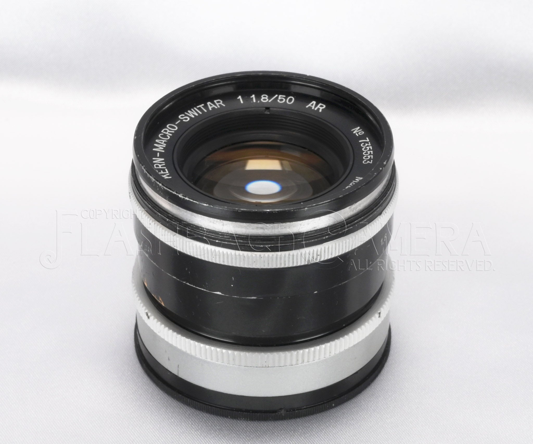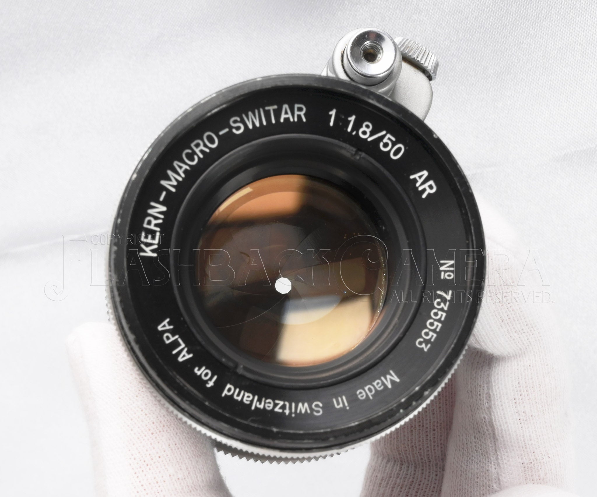 スイス・ケルン社製マクロスイター 50mm f1.8。1958年に登場、1969年までアルパ用標準レンズとして活躍しました。シネレンズ専業メーカーのケルン社が製造した、数少ない写真用レンズ。5群7枚のアポクロマート・レンズ。距離表記はfeet。