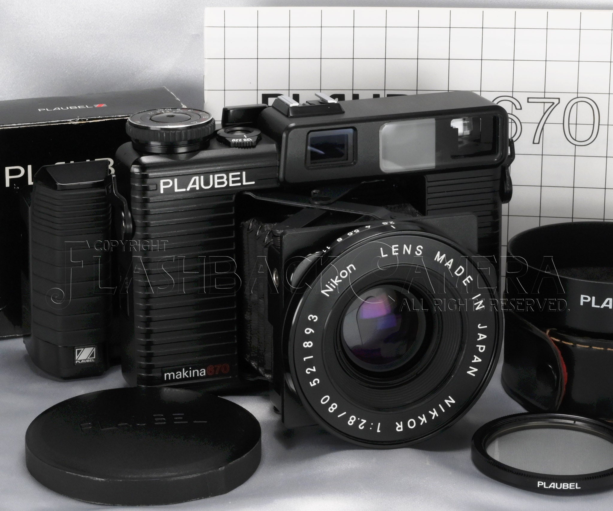 ブランドは独プラウベルながら、設計はコニカ。レンズは4群6枚のニッコール 80mm f2.8、非常に高性能で現代においても定評のあるレンズです。