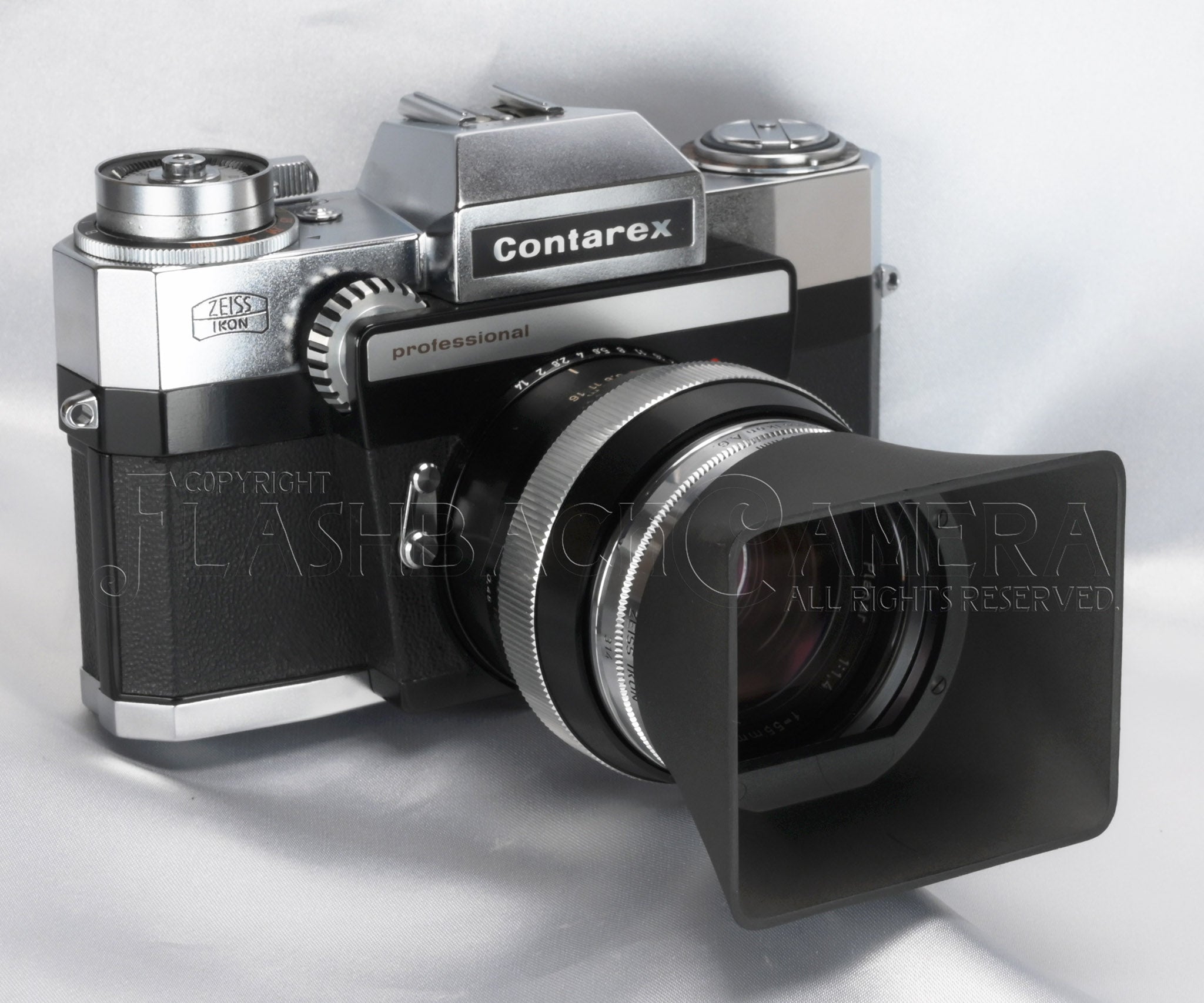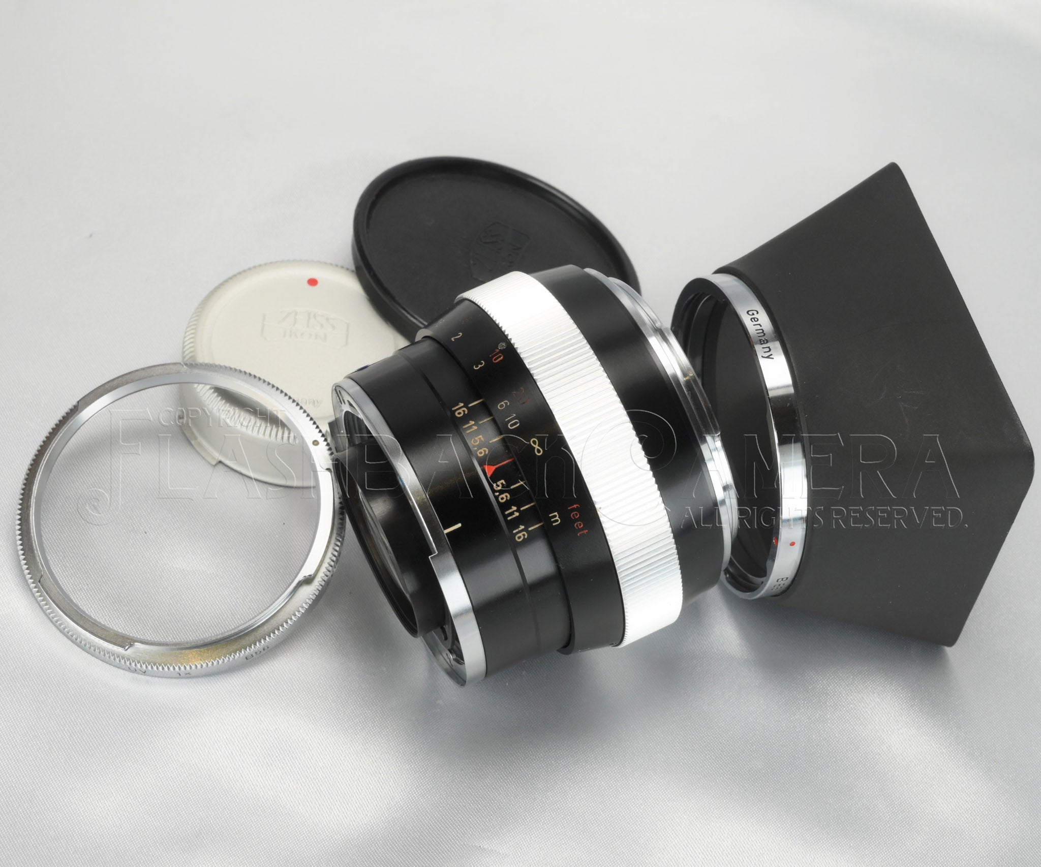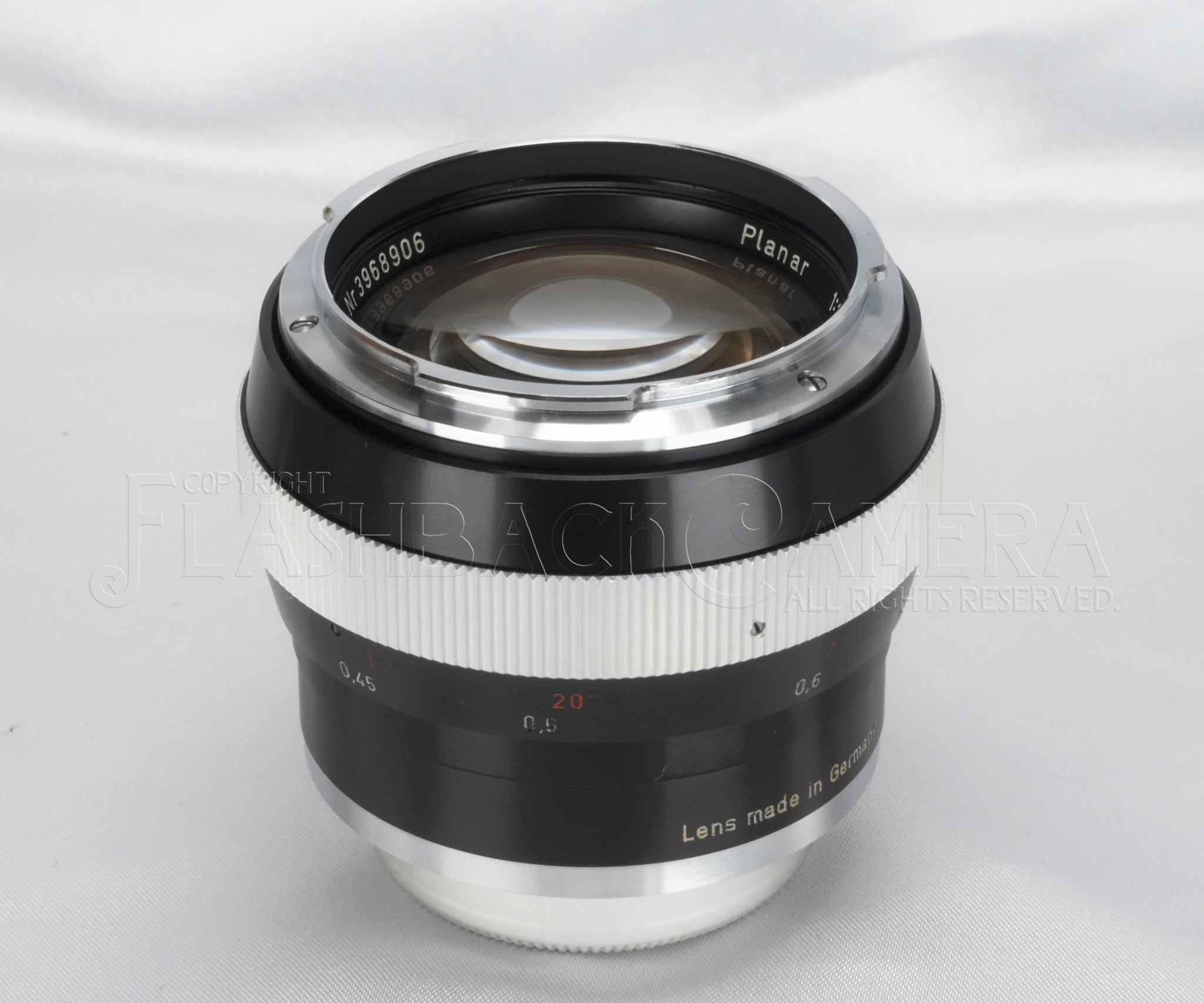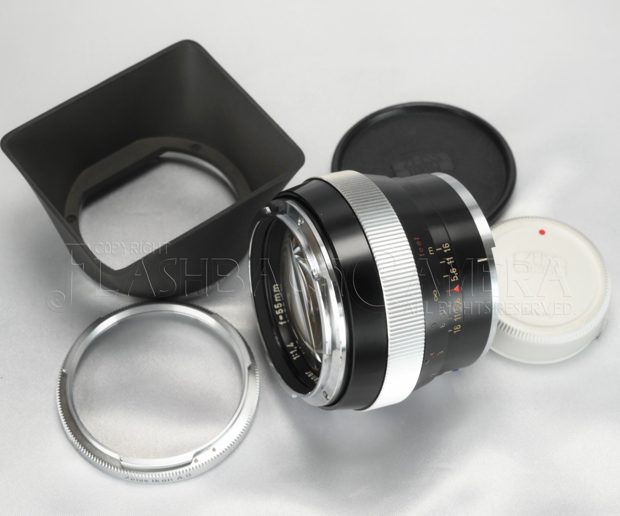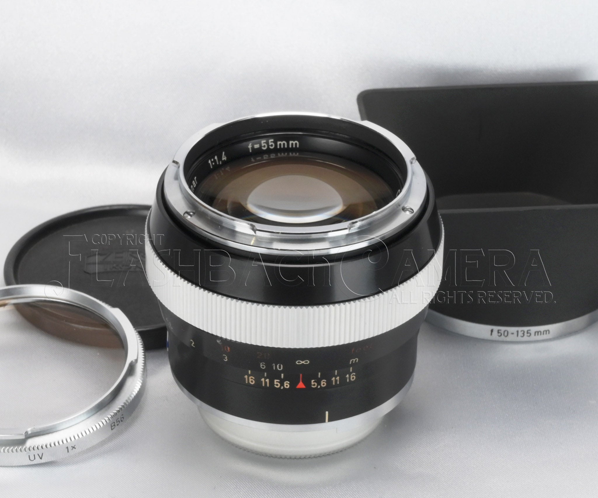 カール・ツァイス製のプラナー 55mm f1.4。コンタレックス用。ブラック仕上げ。1961年から1970年にかけて販売されました。当時はかなり高価なレンズだったようですが、8,275本が製造されており、プラナー 50mm f2、ディスタゴン 35mm f4に次いだ製造本数です。