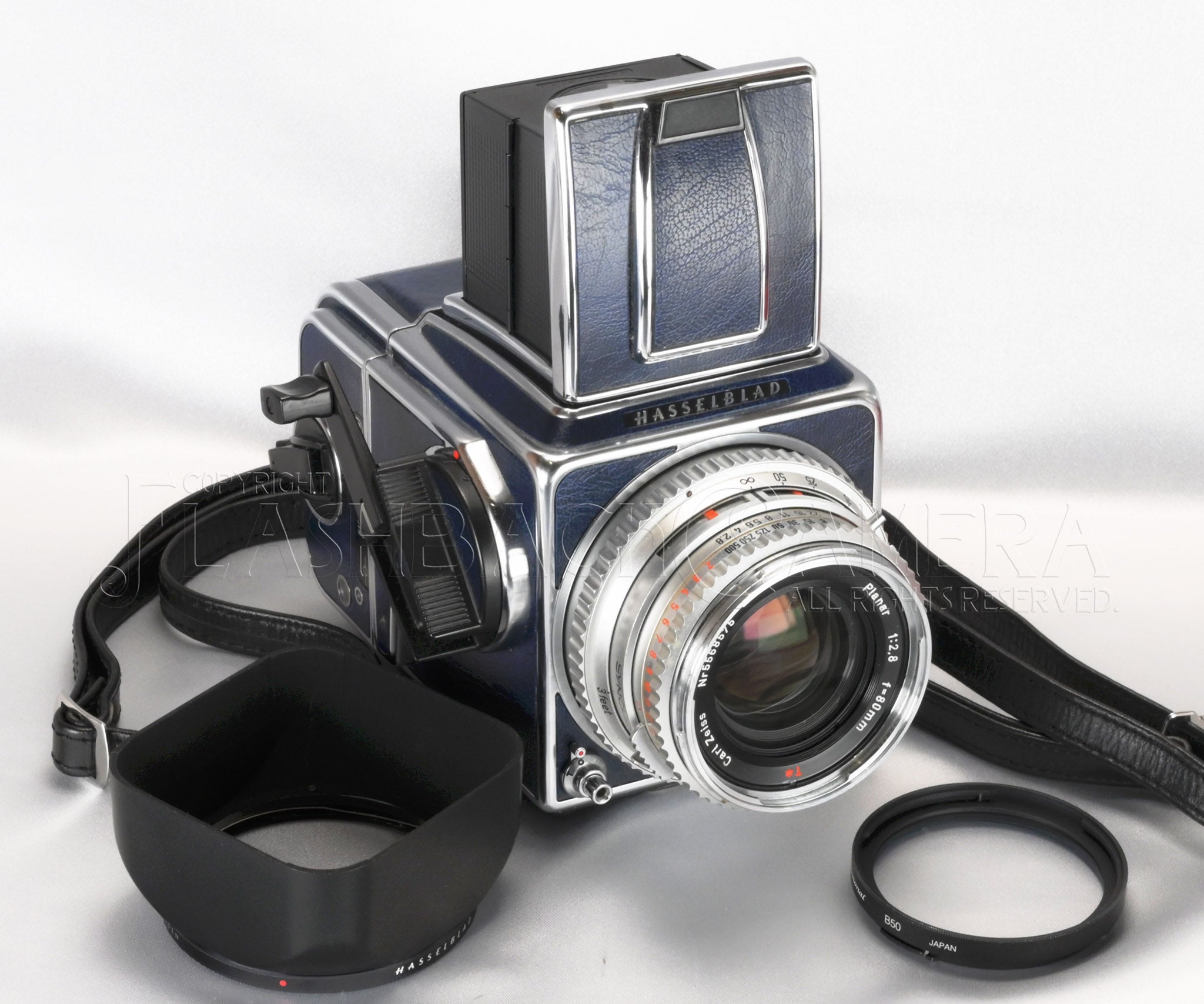 ハッセルブラッド 500C/M、プラナー T* レンズ付。スウェーデン製の中判カメラ。質実剛健な作りの良さが光る名機です。