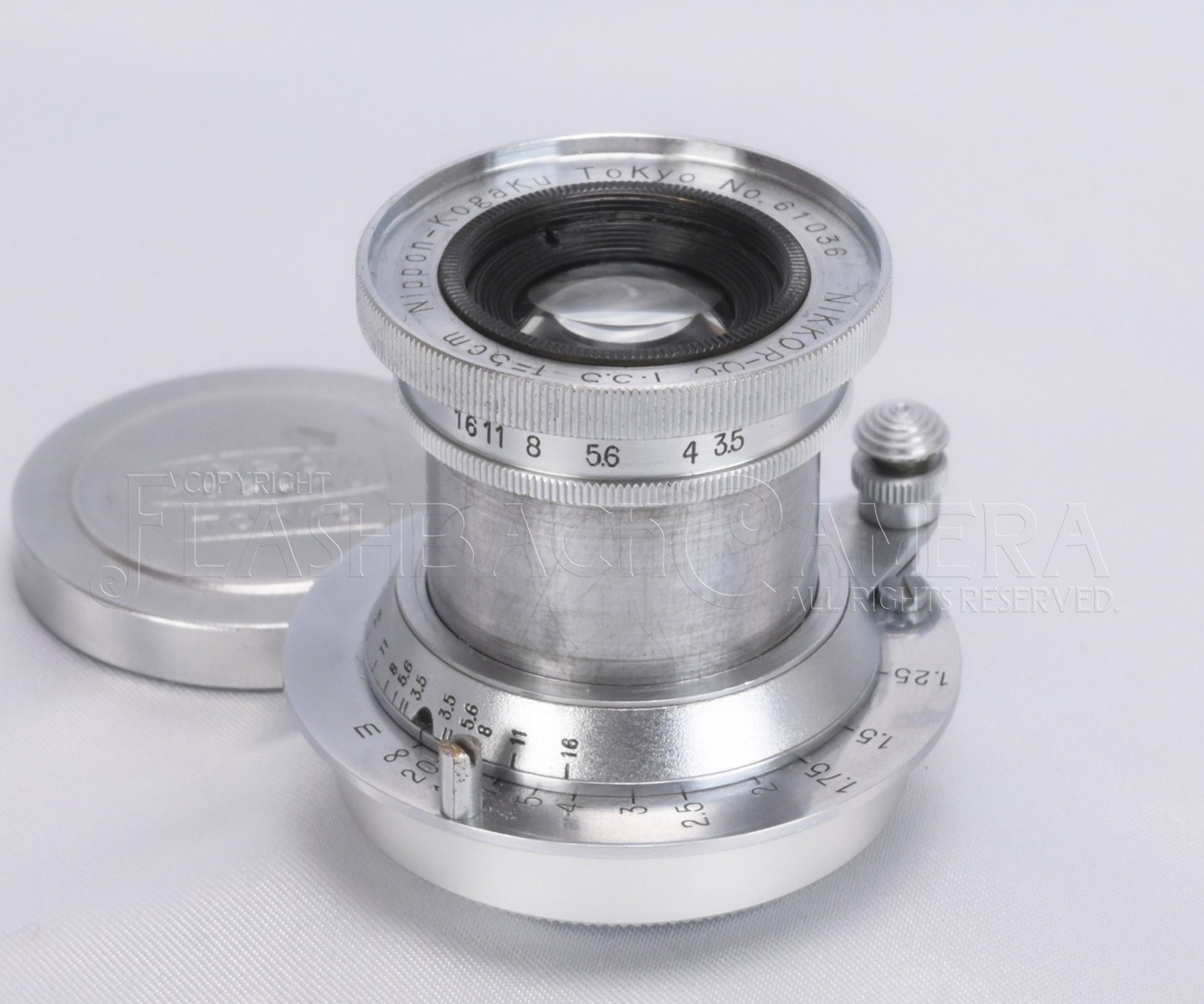 ニッコール 50mm f3.5は、1935年にハンザキャノンに装着されたものがそのルーツとなっていますが、本品は戦後すぐの1945年末から製造を再開し、キャノン SII等のライカスクリューマウント互換機用に供給されたものと思われます。