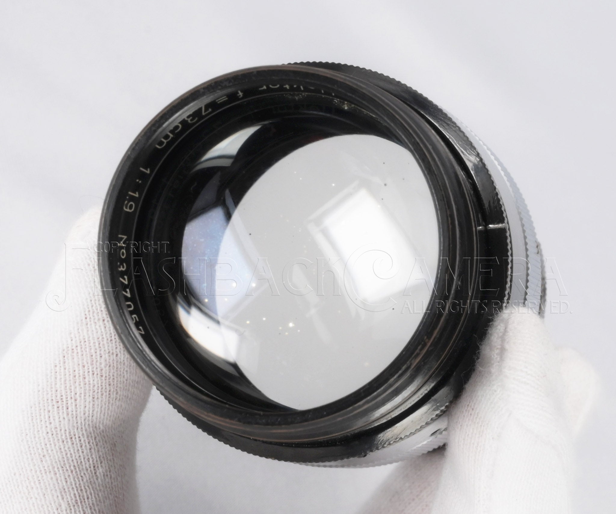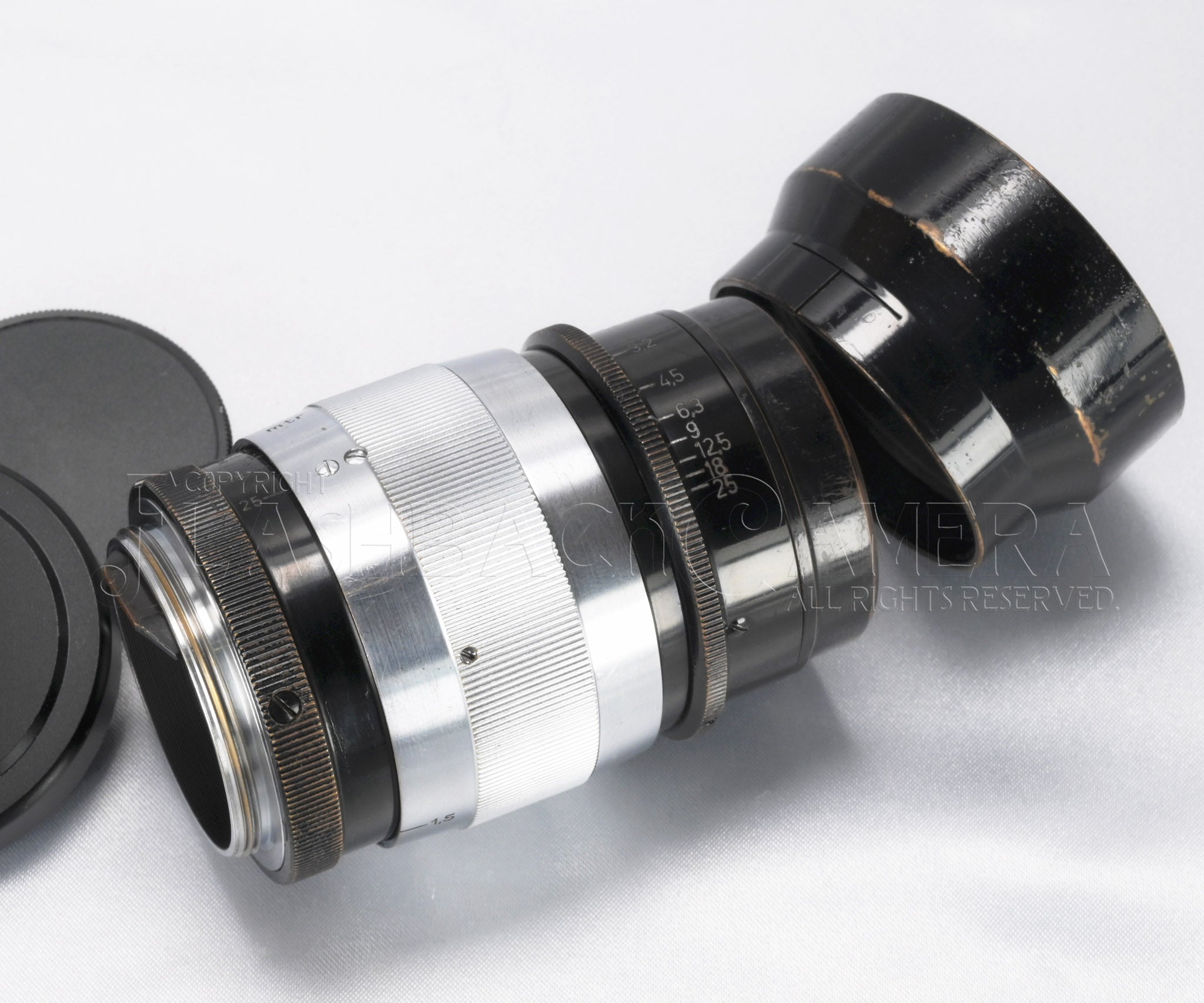 本品の製造番号は37万台。1937年製。メートル表記。直進ヘリコイドのタイプ。距離計連動。バルナックからM型ライカまで、ルックス的にも合わせやすい、ブラックペイントとクロームメッキ仕上げ。フィルター径はE39。